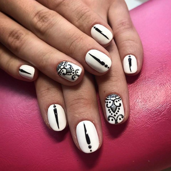 Un jeu de couleurs rendra la manucure blanche plus expressive et efficace. Et ici, vous ne pouvez pas vous passer d’un intriguant dessin d’ongles noir et blanc tellement étonnant et attrayant.