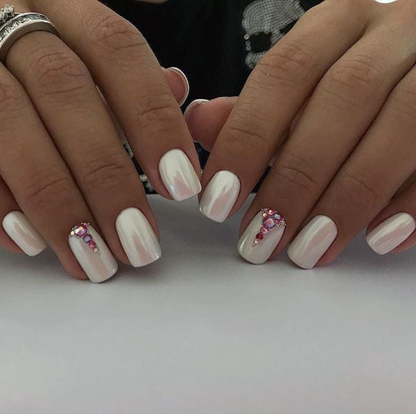 Une manucure blanche sans égal est nécessaire pour compléter les nœuds des épouses, dans lesquelles la retenue, l’attrait et l’impeccabilité de la couleur blanche dans la manucure sont particulièrement importants.