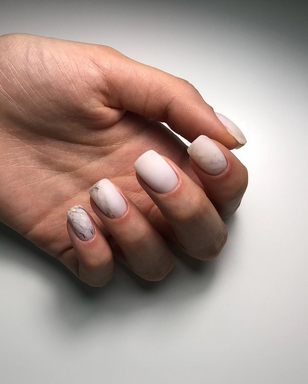 La meilleure solution pour confectionner des motifs tels que des manucures blanches et vous ne pouvez l’imaginer: les motifs en marbre gris-noir contrastants et élégants sont fascinants. Et si vous le souhaitez, vous pouvez réaliser un délicat ornement rose sur une manucure blanche à effet marbre.