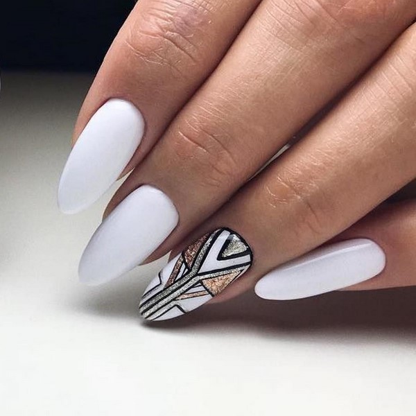 Si vous aimez le romantisme, choisissez des fleurs, des boucles et de la dentelle. Pour les filles extraordinaires et créatives, une manucure blanche avec des ornements ethniques vous séduira. Mais la manucure blanche de bureau complétera parfaitement les motifs géométriques.