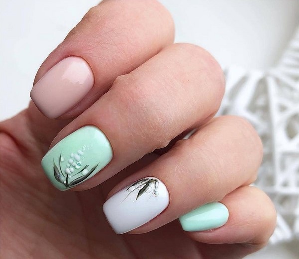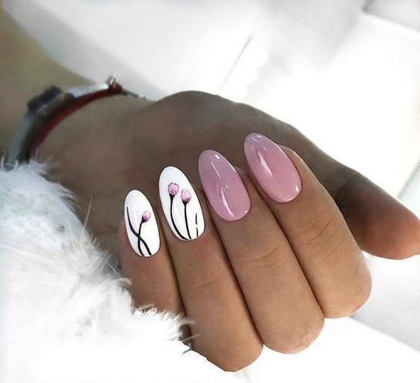 Diverses mini-fleurs, petits et minuscules boutons, branches, folioles - tout cela est bien accueilli dans le nail art, et vous trouverez une manucure blanche à la mode dans ce style.