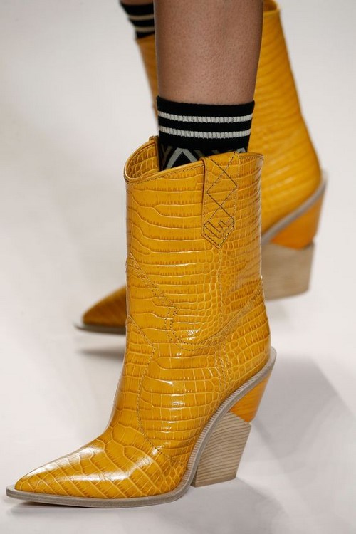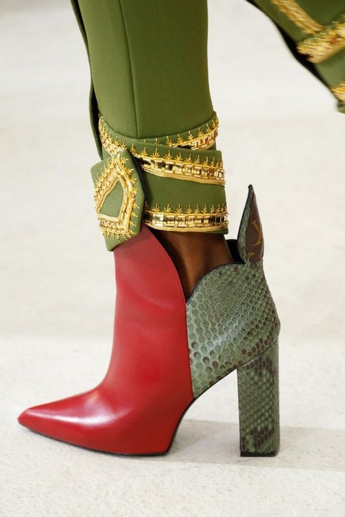 Alors les designers ont décoré les bottines fentes et parties ouvertes, rivets et broches en métal, glands et franges, sangles et laçage, boutons et paillettes, plumes et fourrure.