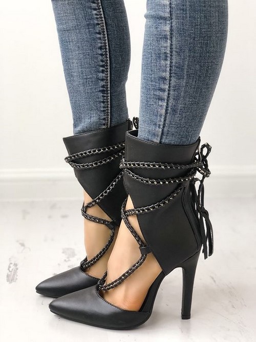 Impressionnée par les bottines avec plus de détails et un décor, cette chaussure tendance donne un luxe spécial et chic.