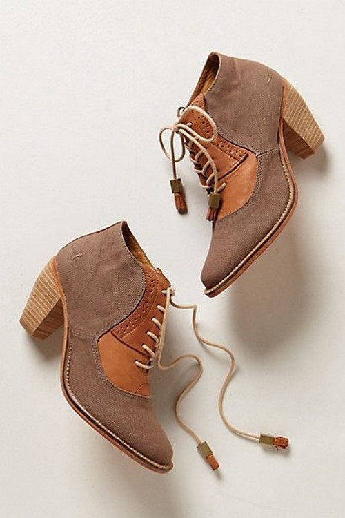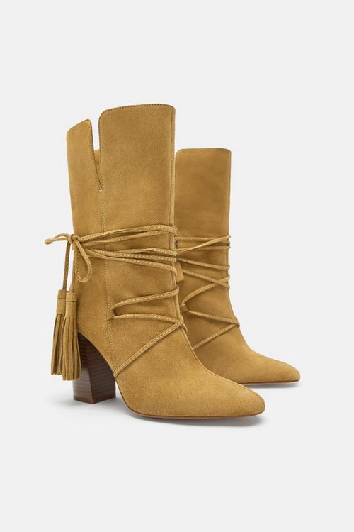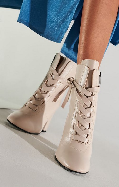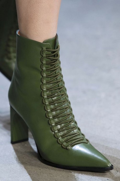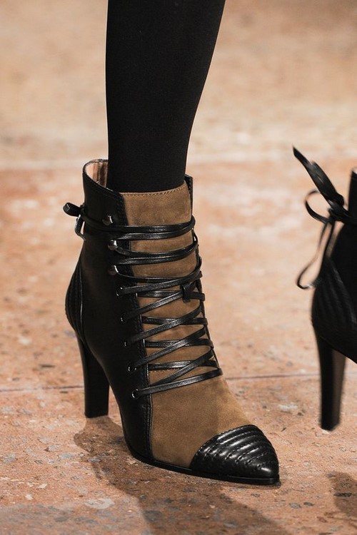 Une autre tendance de la mode - bottines lacées sur un talon bas ou haut, mais stable.