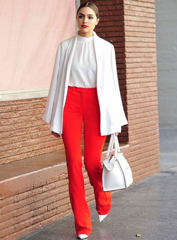 Si vous le souhaitez, vous pouvez choisir vous-même un pantalon noir classique au bureau. Recherchez des pantalons beiges et crème à la mode, faites des accents éclatants avec des pantalons rouges, roses, bleus et en terre cuite pour le bureau. Pour l’été, optez pour un pantalon de bureau impeccable blanc, crème et gris clair.