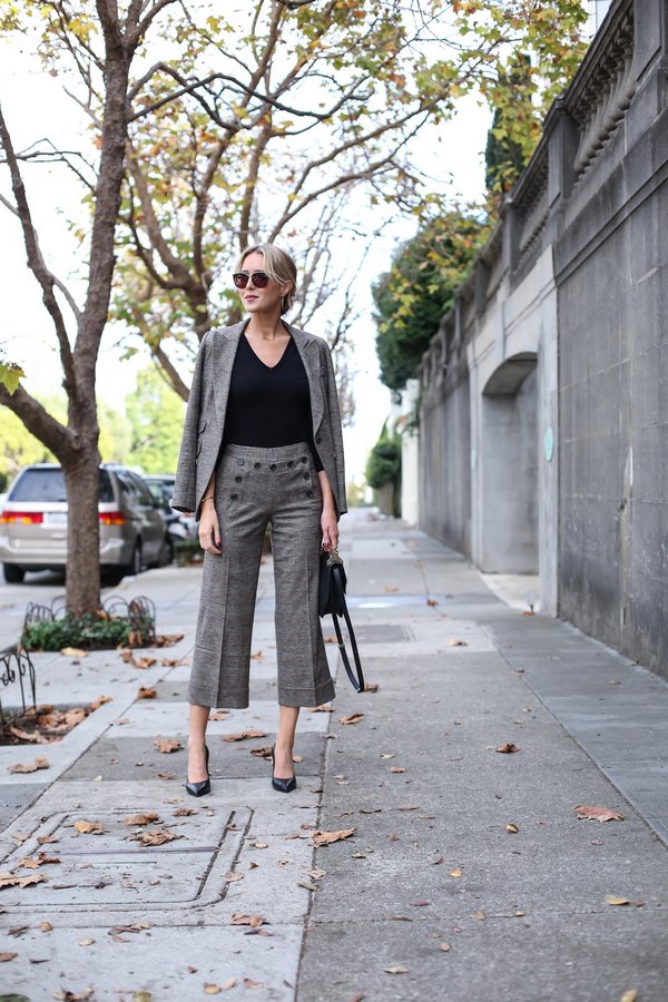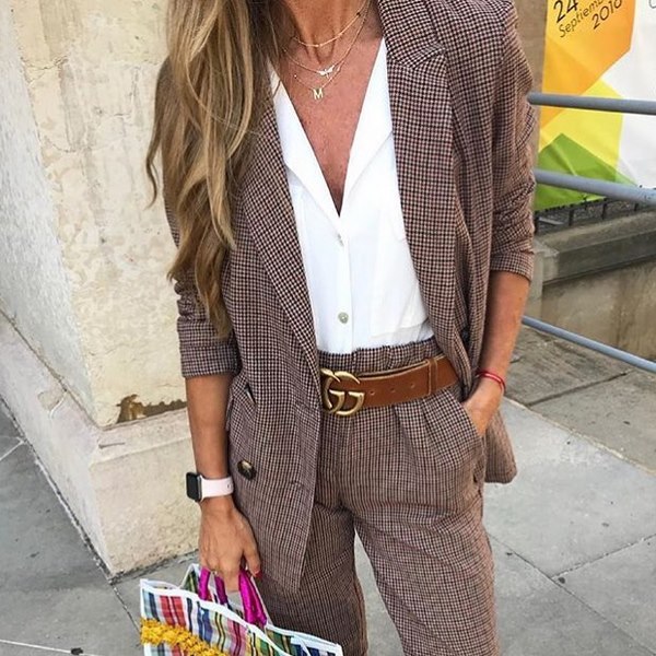 Avec des imprimés et différents types de vestes, avec un haut en forme de chemisier, avec différents types de pantalons ou de jupes, les costumes de bureau à la mode raviront par leur diversité. Un pantalon en tailleur à la mode pour le bureau peut être doté d'une taille haute et d'une ceinture ou de volants légers, raccourci et légèrement évasé. Aujourd’hui, vous trouverez dans le bureau cette version d’un costume qui vous convient le mieux et qui vous plaira.