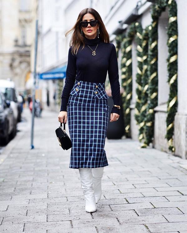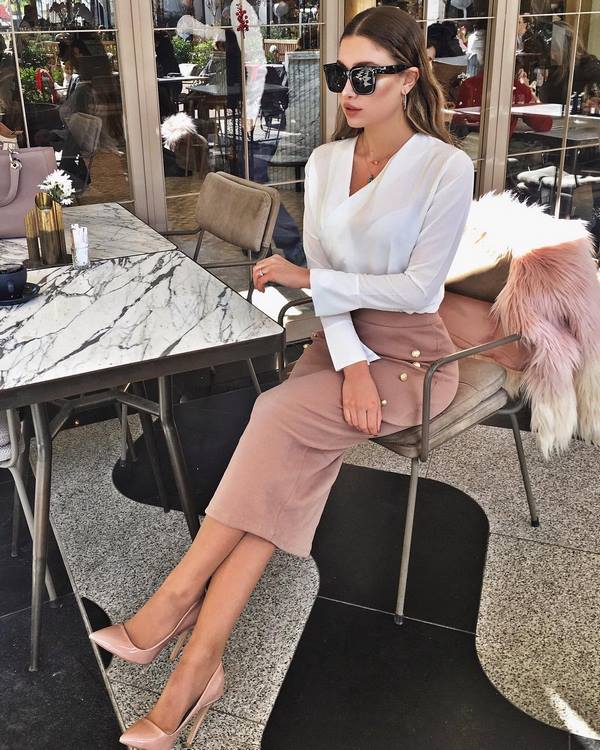 Un arc professionnel avec une jupe et un col roulé pour la saison froide sera intéressant, mais au printemps et en été, il est préférable de choisir une belle option pour une chemise ou un chemisier avec une jupe mi-longue, qui aura fière allure dans une image de business pour le travail.