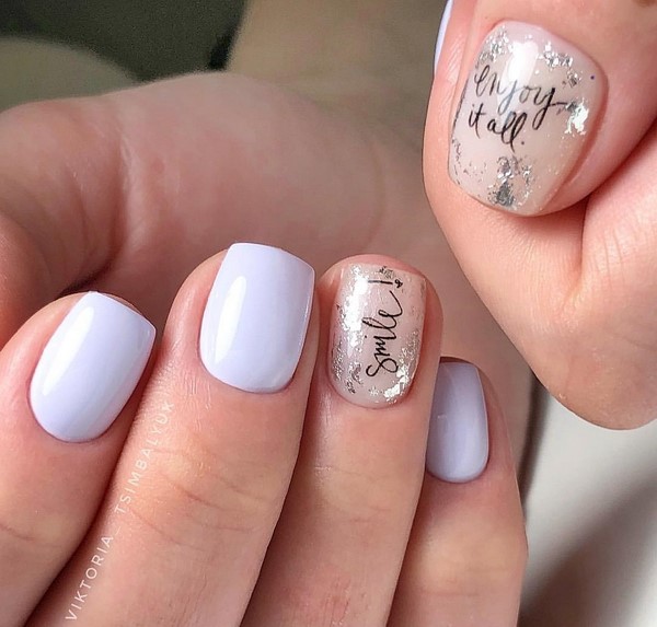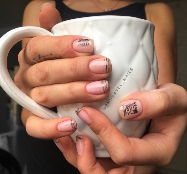 Des solutions fraîches pour la conception des ongles courts peuvent être trouvées dans des variantes avec des inscriptions de styles différents, ce qui peut être attribué en toute sécurité à la section de nail art à la mode sur les ongles courts. En effet, la conception des ongles courts avec des inscriptions dépendra beaucoup de la police de caractères et de l’ajout de lettres et de mots sur les ongles - feuille, kamifubuki, boucles et ornements.