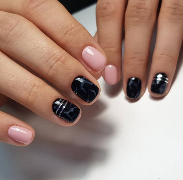 Il convient de noter que, comme toute conception de clou, une manucure dans une courte longueur de clou possède ses propres caractéristiques. Parmi ceux-ci, on peut distinguer un excellent tandem de manucure pour les ongles courts avec un style minimalisme dans sa conception.