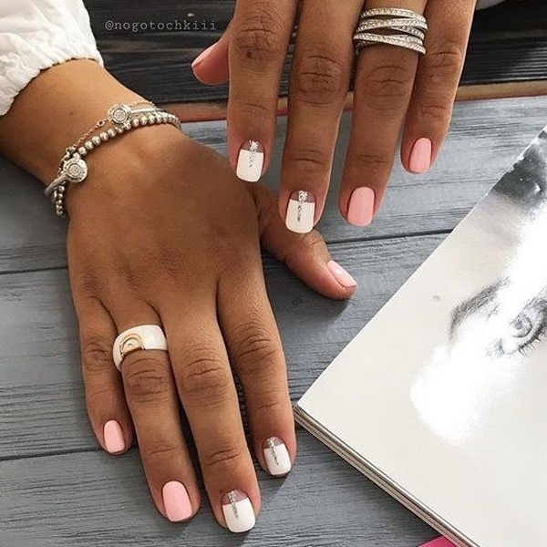 La «géométrie» manucure courte tendance vous aidera à obtenir des idées de manucure chics pour le travail, à compléter une image d’entreprise et à concevoir simplement des ongles courts décontractés pour chaque jour. Et si vous ajoutez une goutte de paillettes et d’étincelles à la conception géométrique des ongles courts, vous pouvez obtenir une manucure irrésistible et concise pour les ongles courts.