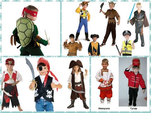 Les fabricants ont offert un large éventail de choix. Ainsi, en 2025-2026, des costumes pour garçons sous la forme de marins, de pirates, d'un chat en bottes, de hussards, de cow-boys, etc. seront disponibles.
