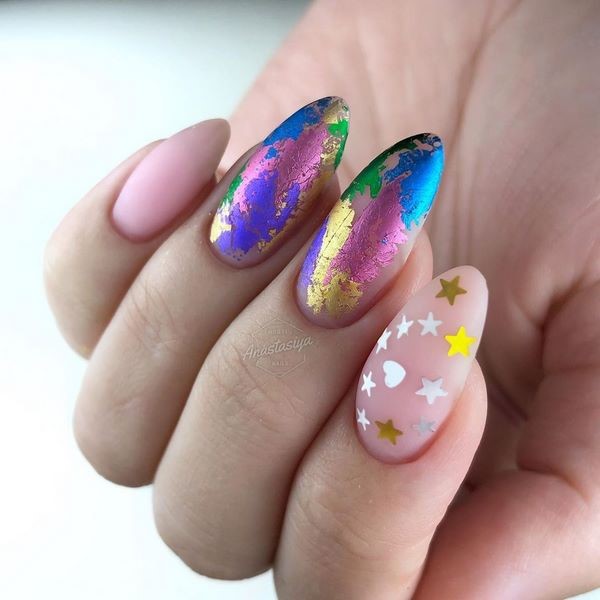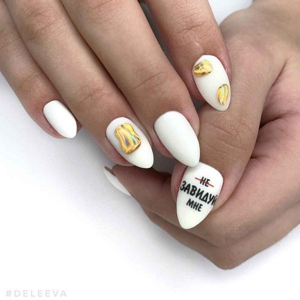 Il n’est pas utile de trop en faire avec des strass, des feuilles, des frottements, des paillettes, mais décorer de beaux ongles avec ces matériaux et d’autres matériaux en quantité mesurée en vaut certainement la peine, car ils ajouteront de la sophistication à tout design, même le plus simple.