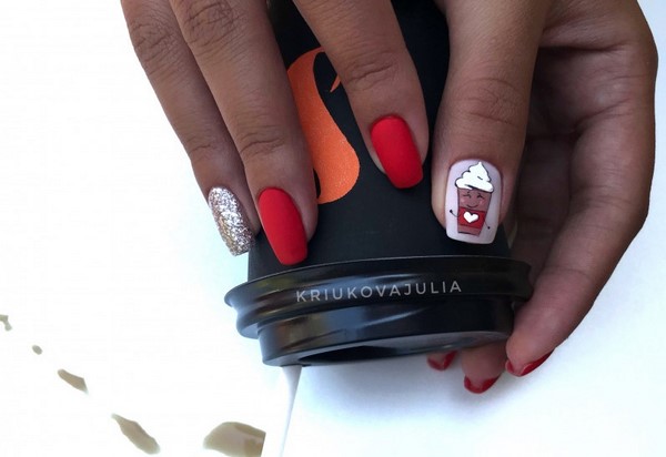 Nous avons déjà mentionné que la manucure rouge fonctionne toujours très bien avec les dessins originaux sur les ongles.