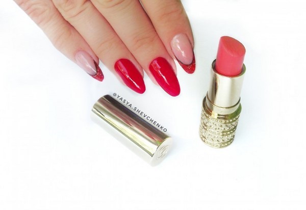 La manucure rouge peut être faite en utilisant la technique de manucure française, ombre, lune rouge.