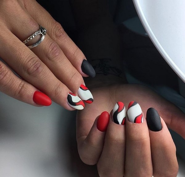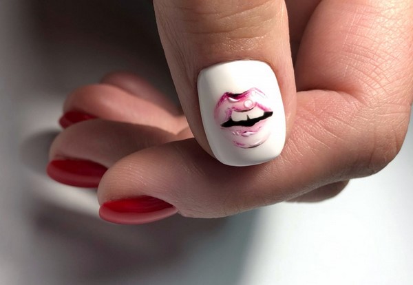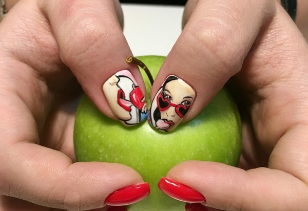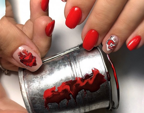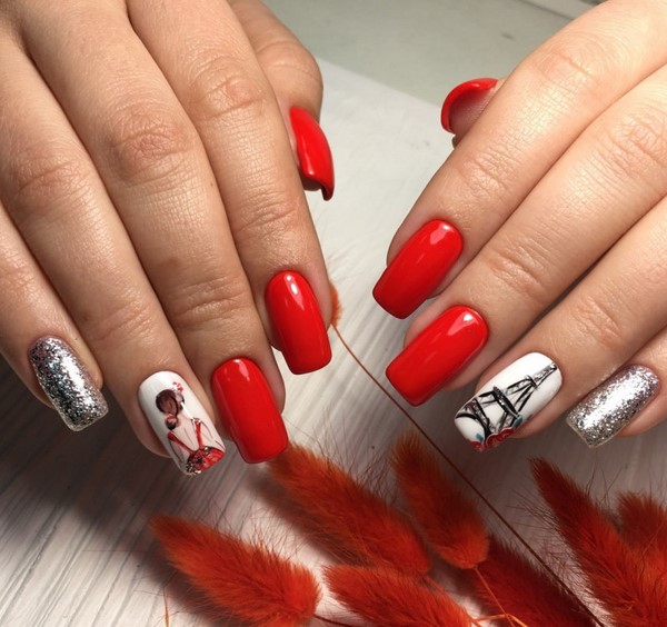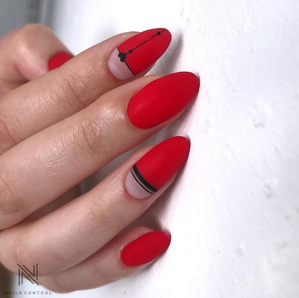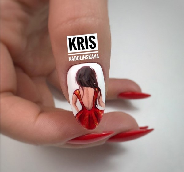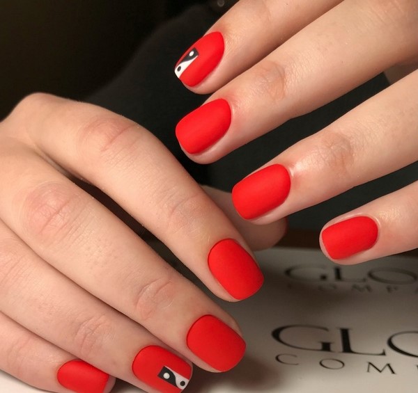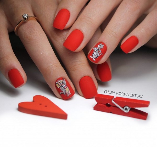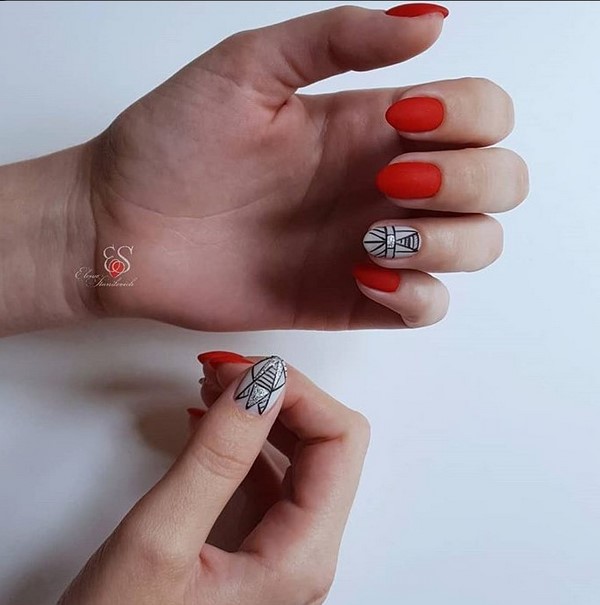 Nous avons déjà mentionné que la manucure rouge fonctionne toujours très bien avec les dessins originaux sur les ongles.