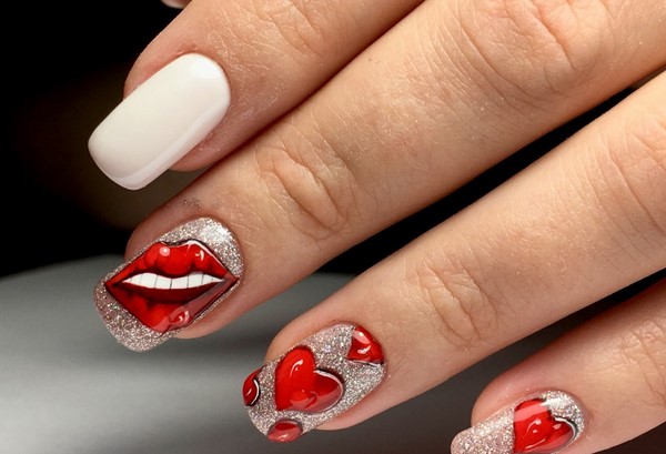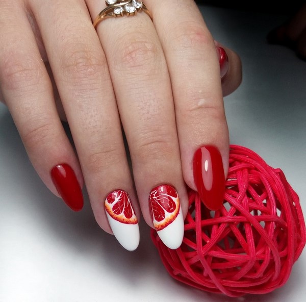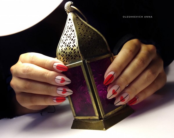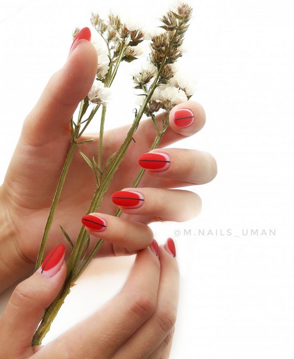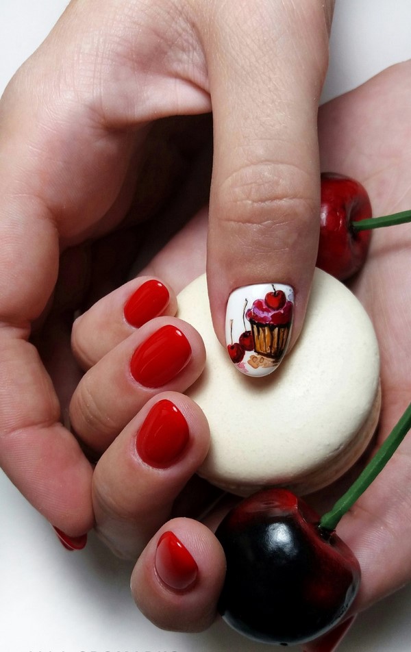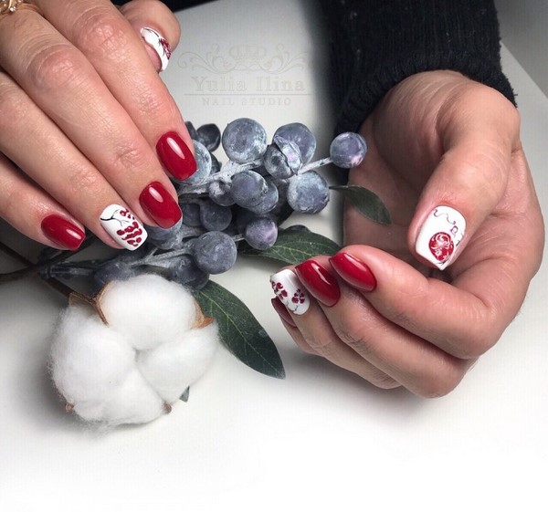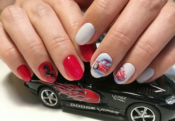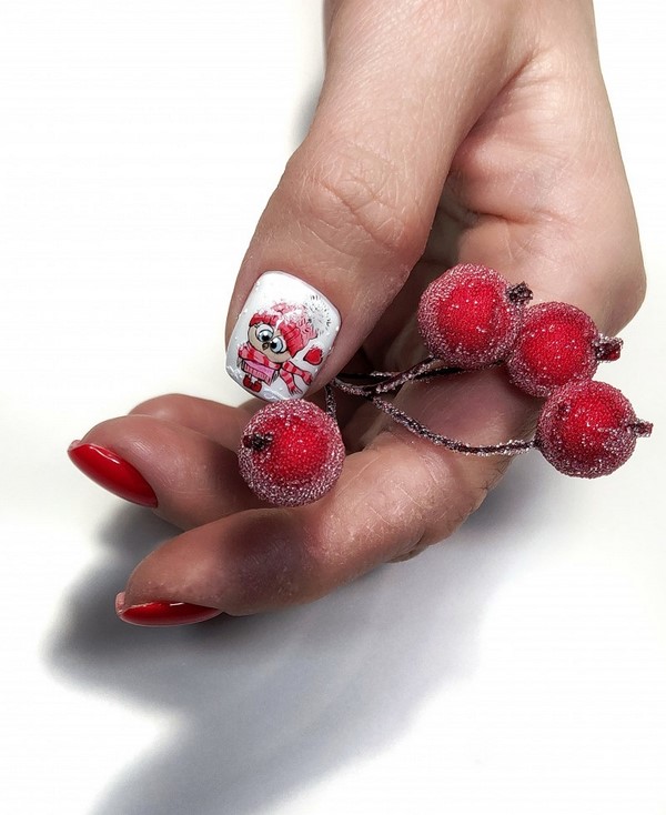 Nous avons déjà mentionné que la manucure rouge fonctionne toujours très bien avec les dessins originaux sur les ongles.