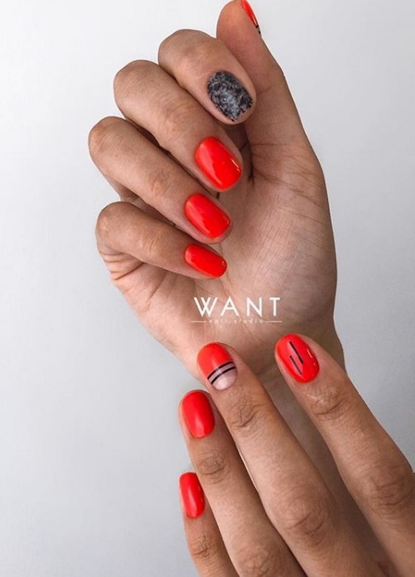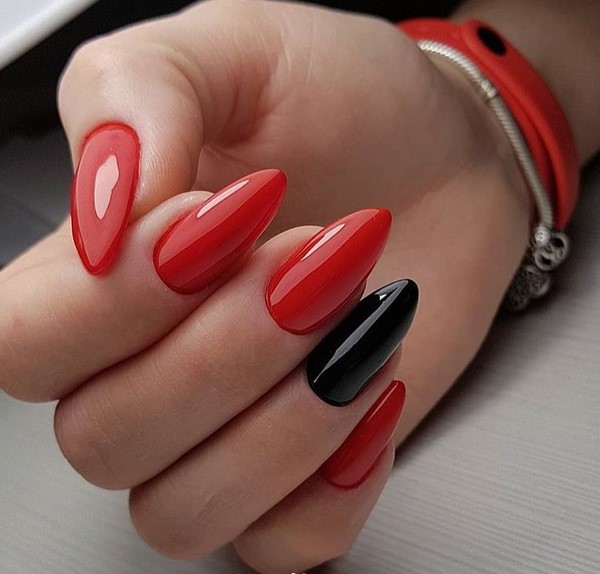 La manucure rouge aura fière allure sur les ongles longs et les ongles de longueur moyenne. Décorez également la manucure rouge et les ongles courts.
