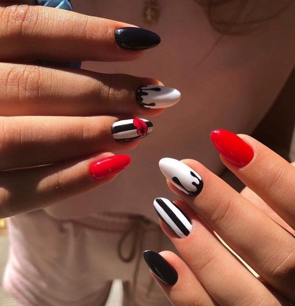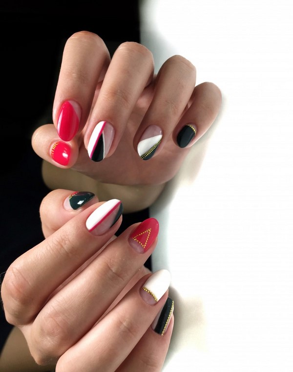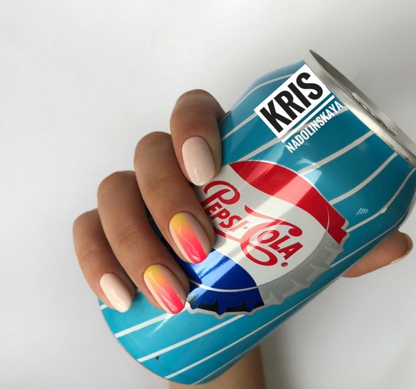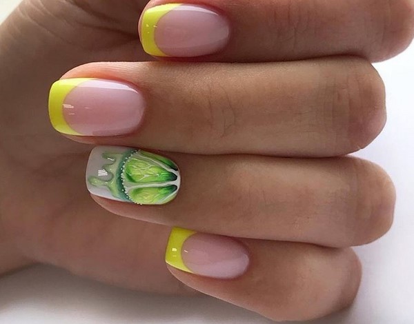 Beaucoup de couleurs vives peuvent sembler si ambiguës que de «cadrer» tout cela dans un seul dessin de manucure pour l’été peut ne pas être aussi simple. Dans ce cas, la technique de «l'espace négatif» vous aidera beaucoup, vous permettant de laisser des parties séparées du souci non peintes, ce qui ajoutera une touche de légèreté et de sophistication à une manucure estivale lumineuse. La manucure estivale avec un «espace négatif» sera magnifique avec des brindilles, des motifs géométriques, ainsi que dans la conception des ongles lunaires pour l’été.