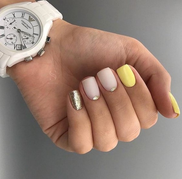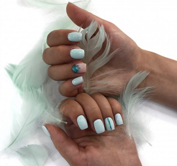 Une manucure pastel chic pour l’été, et pour cela choisir un décor minimaliste ou laconique avec des paillettes et du papier d'aluminium - vous ne pouvez pas trouver une manucure d'été plus attrayante dans une solution à la mode!