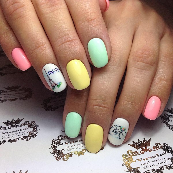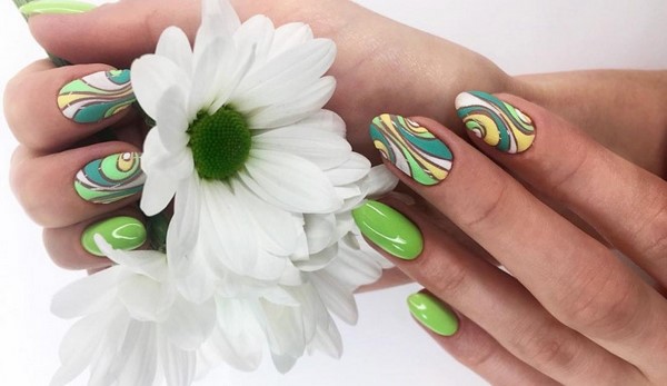 Jetez un coup d’œil à la manucure estivale à la mode avec des motifs ethniques, qui s’exprime de manière très expressive dans des tons agréables et doux. Et si vous aimez les ongles d'été plus décontractés, les teintes pastel conviendront parfaitement.