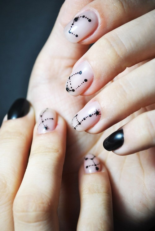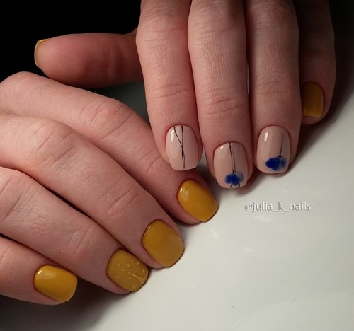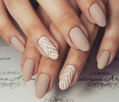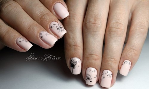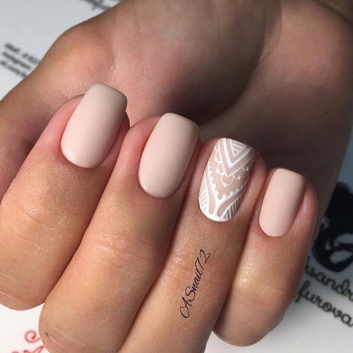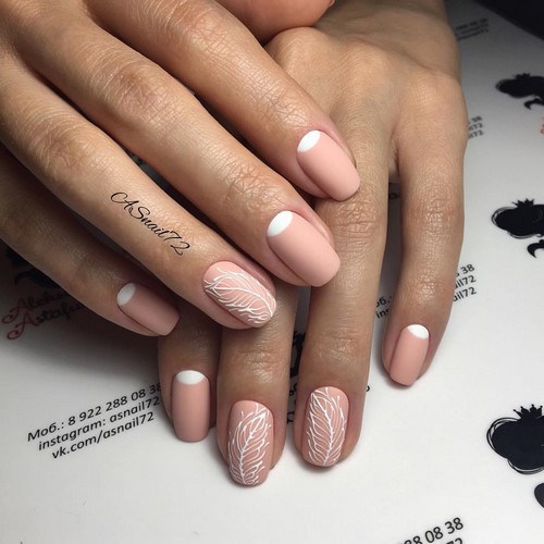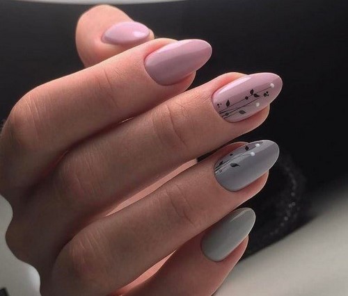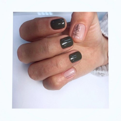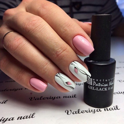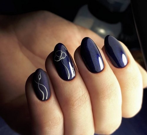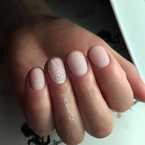 L'option idéale serait une manucure minimalisme dans un motif monochrome avec des fleurs ou des brindilles sur un seul clou.