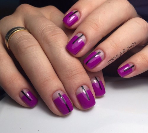 La manucure géométrique minimalisme peut combiner jusqu'à trois nuances, plusieurs formes simples ou des lignes dans différents endroits, des options originales pour combiner une surface monophonique et un motif géométrique.