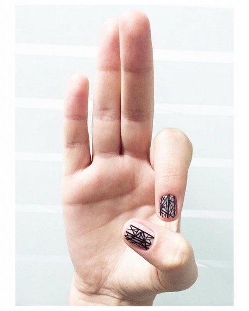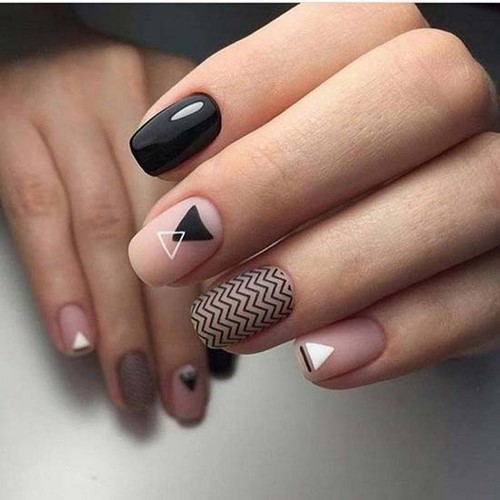 L'application la plus réussie de la géométrie dans le minimalisme est une manucure avec une bande, ou un carré, un petit triangle sur les ongles.