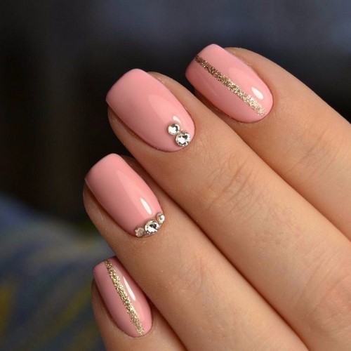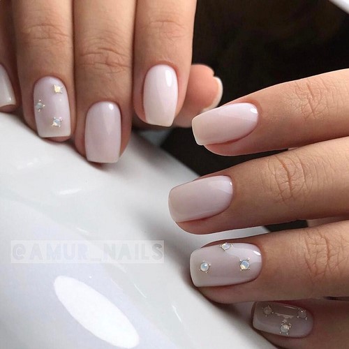 Les maîtres recommandent également de décorer le minimalisme sur les ongles avec littéralement un ou deux cailloux ou perles, ce qui est incroyable lors d’une manucure modeste en soirée ou en mariage.