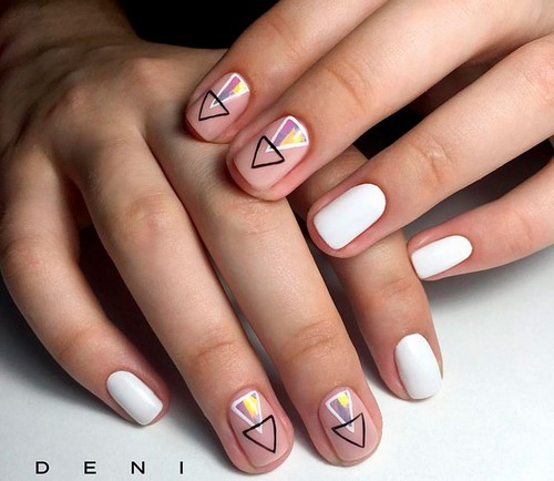 La tendance est au minimalisme manucure noir, blanc, gris, beige, etc. Les teintes vives ne peuvent être utilisées que si elles sont diluées avec du blanc, ce qui les rend moins accrocheuses.