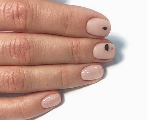 Le minimalisme sur les ongles permet également des motifs et des dessins, mais ils sont exécutés dans de très petites tailles ou étirés sur tous les ongles, créant une composition intéressante et inhabituelle.