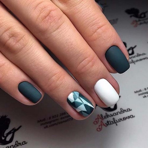 Le minimalisme à la mode sur les ongles est réalisé à la fois sur les vernis brillants et mats. Notez que les ongles mats dans les tons sombres sont une belle option sophistiquée. Les ongles blancs mats dans un style minimaliste ont l'air frais et doux.
