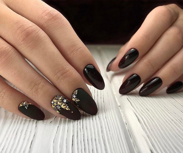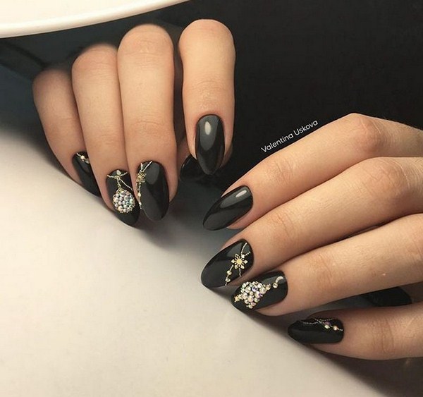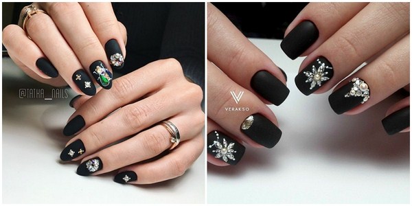 En outre, les strass colorés et les cailloux, les frottements et les éclats de cristal (cristal de lutin) aideront à réaliser de la meilleure façon possible la magie des ongles dans le style de manucure du Nouvel An.