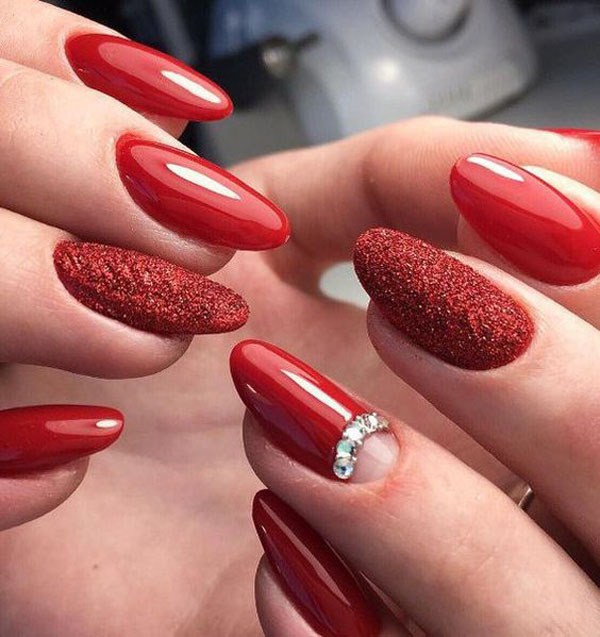 Manucure pour le Nouvel An 2026 avec des paillettes sur les doigts ou en plus de la conception de base du nail art du Nouvel An sera à la mode et à la mode.