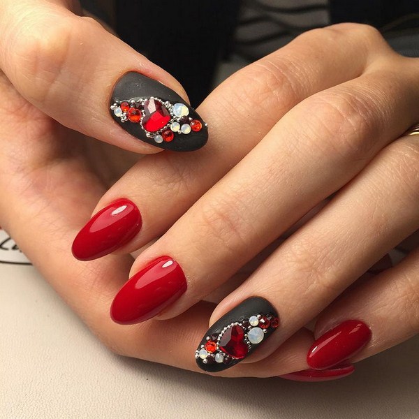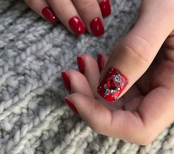 Le rouge peut à juste titre être considéré comme la couleur du Nouvel An: décorations de Noël rouges, chapeaux et vêtements du Père Noël, rubans et autres décorations - tout cela est spectaculaire dans une teinte rouge du Nouvel An. Alors pourquoi ne pas faire une manucure rouge du Nouvel An avec ou sans décor? Une manucure mate avec de la poudre, du mica, des confettis et des cristaux sera très solennelle et excitante. Le rouge est également beau dans la conception des ongles d'entreprise, vous permettant d'ajouter de l'élégance et des notes expressives aux arcs élégants du Nouvel An. Nous vous assurons que si vous choisissez une manucure rouge pour le Nouvel An 2026, vous ne perdrez certainement pas!