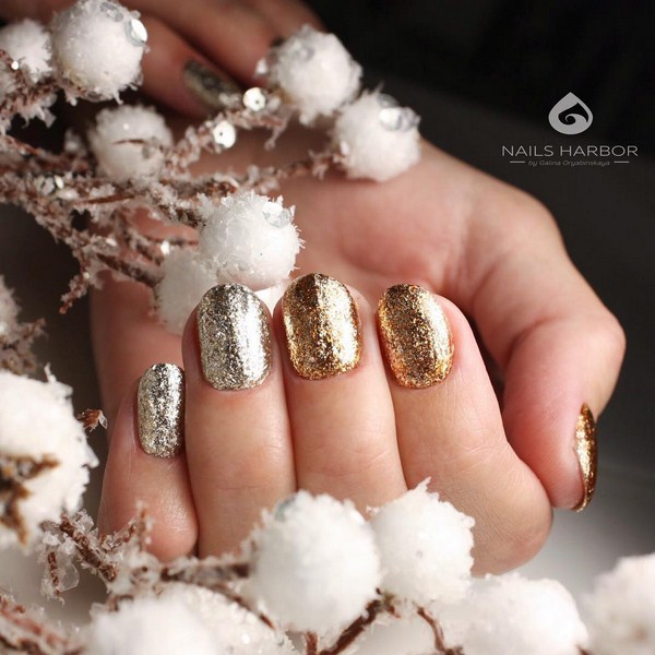 Une dispersion d’étincelles dans le design de kamifubuki pour le Nouvel An ou d’impressions de feuilles avec des reflets colorés donnera à la manucure du Nouvel An espièglerie et sophistication.