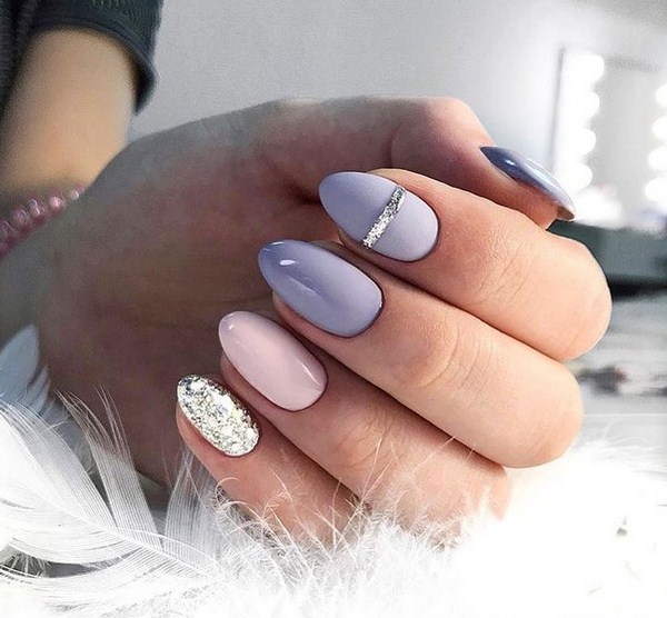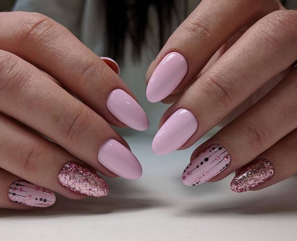 Si vous voulez une belle manucure avec des rayures 2025-2026, optez pour de jolis tons pastel de vernis pour la base et des rayures noires ou des rayures de papier d'aluminium, de paillettes, de strass.