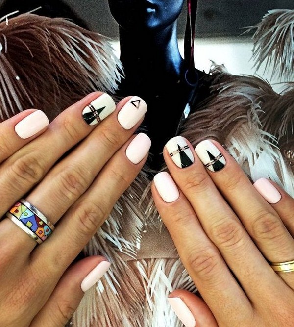 Les rayures sur les ongles, quelle que soit leur conception, ont l’air sophistiqué et impressionnant, mais si vous voulez un design frais et merveilleux avec des rayures sur les ongles dans une solution complexe, la manucure à rayures "géométrie" est faite pour vous!