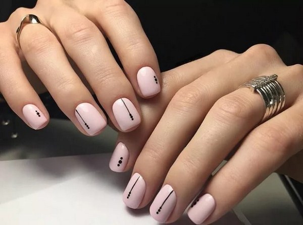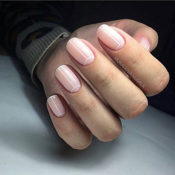 Une manucure irrésistible avec un ou deux traits sur les ongles dans des tons neutres et calmes est l'apanage du design des ongles dans une direction minimaliste, idéale pour tous les looks.