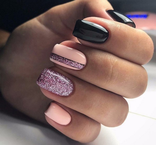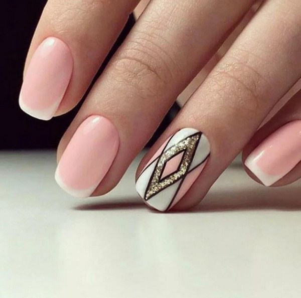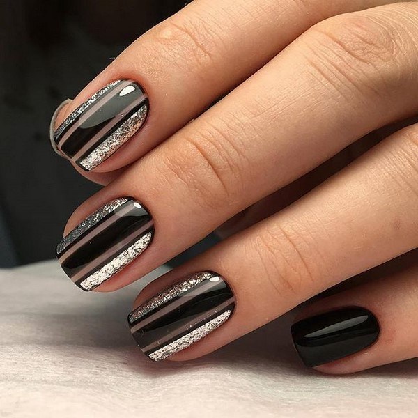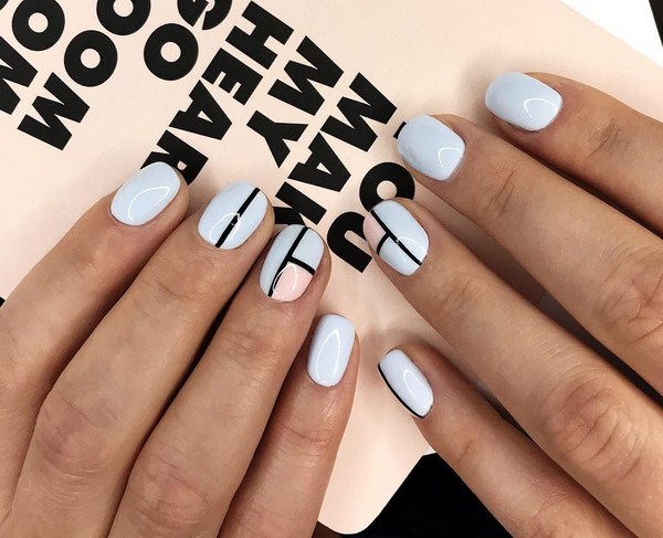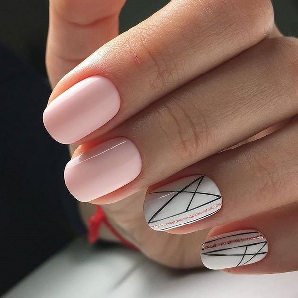 Si vous voulez une belle manucure avec des rayures 2025-2026, optez pour de jolis tons pastel de vernis pour la base et des rayures noires ou des rayures de papier d'aluminium, de paillettes, de strass.