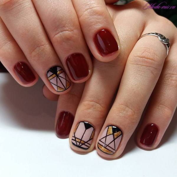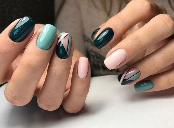 Les rayures sur les ongles, quelle que soit leur conception, ont l’air sophistiqué et impressionnant, mais si vous voulez un design frais et merveilleux avec des rayures sur les ongles dans une solution complexe, la manucure à rayures "géométrie" est faite pour vous!