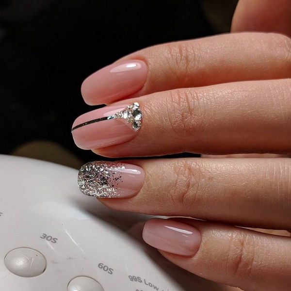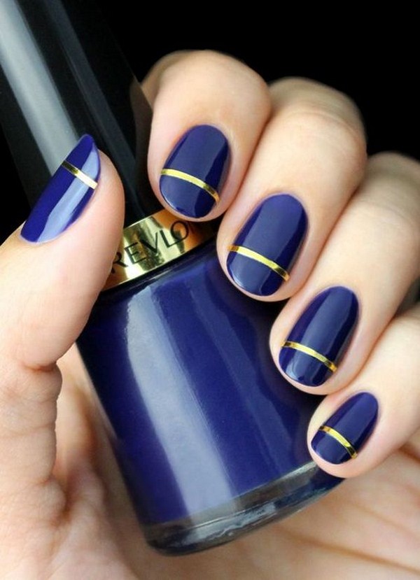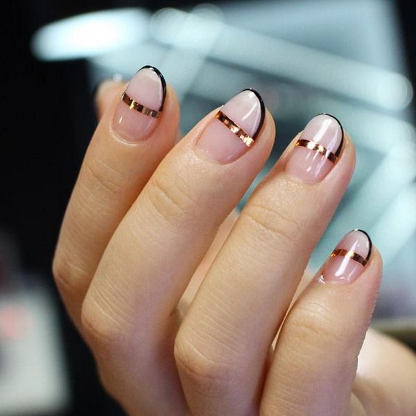 Après avoir recouvert les ongles avec l’un des tons de vernis que vous préférez, créez des bandes à l’aide d’étincelles ou posez des strass le long ou à travers l’ongle pour obtenir une alternative aux bandes de vernis. La conception attrayante de la bande dans cette solution est excellente et décore gracieusement les doigts de chaque femme.