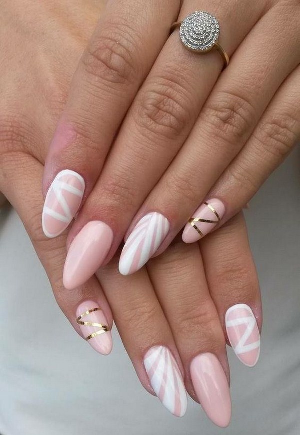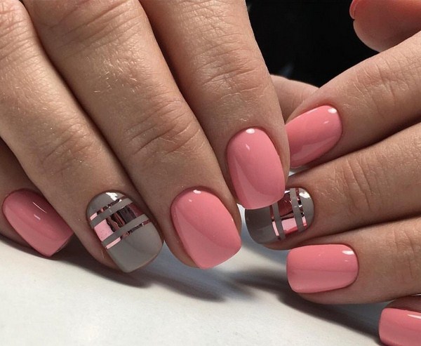 Manucure impeccable et particulièrement appropriée avec des rayures pour la présentation professionnelle de la conception des ongles, qui ornera parfaitement les ensembles de bureau restreints. Pour ce type d’entreprise, il est préférable d’utiliser des tons chair et pastel qui s’harmonisent parfaitement dans toutes les interprétations.