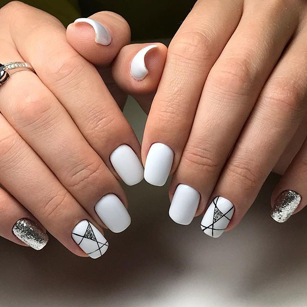 Vous permet de créer une manucure «géométrique» avec des lignes et des rayures 2025-2026 ainsi que les bonnes combinaisons de tons de vernis, de préférence contrastés - brillante et riche ou blanche et noire, de paillettes, de brillants et d '«espace négatif».
