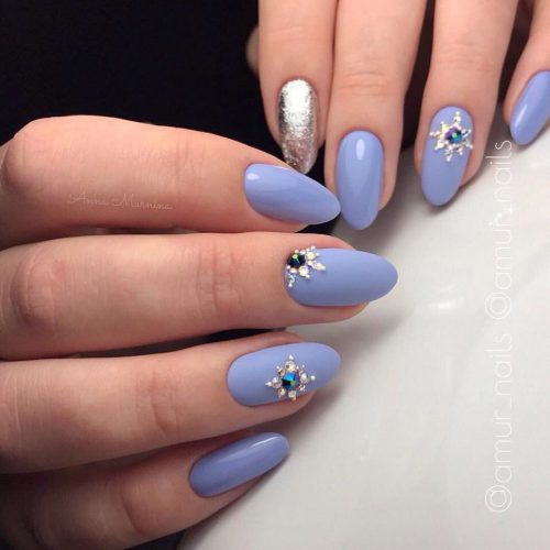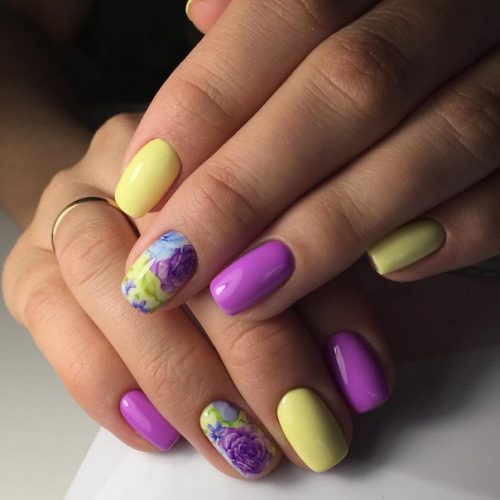 La manucure printemps-été 2025-2026, bleue, lilas et lilas, sera assortie sur les ongles des filles et sera parfaitement combinée avec des teintes de vernis gel blanc, beige, rose pâle, turquoise et menthe.
