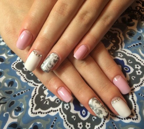 Rien ne pourra décorer une manucure printemps-été 2025-2026 à la manière de doux motifs minimalistes et délicats combinés au lustre et à la luminosité de strass, d’éléments chromés, de perles et de microbilles.