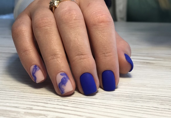 Le design inhabituel de la manucure avec une finition mate peut être obtenu grâce à l’effet du nail art enfumé. La tendance du design des ongles sera l’accent mis sur deux doigts, avec un effet de fumée sur la finition mate des ongles. Pour obtenir un tel design d'artiste enfumé, vous aurez besoin d'une peinture gel, d'une pâte gélifiée et de vernis à vitrail qui vous aideront à réaliser une manucure mate à la mode avec un motif enfumé.