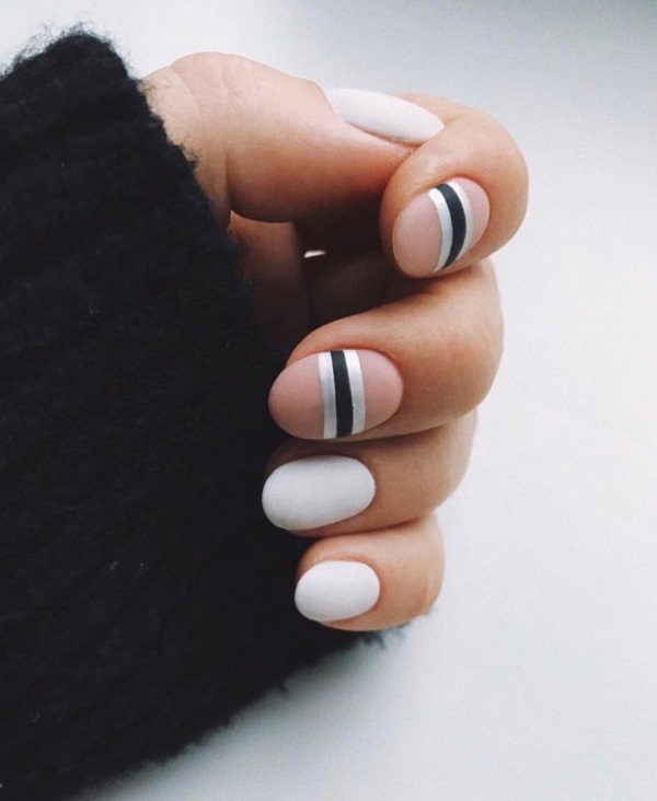 Le papier d'aluminium pour la décoration des ongles sera le numéro un parmi les meilleurs designs de la saison à venir. Ajoutez des bandes dans une nuance argentée ou dorée pour ajouter des notes glamour à un motif de manucure calme et mat. En combinant des bandes de papier d'aluminium larges et étroites sur des ongles mats, vous obtenez un dessin d'ongle mat très original. Une manucure à rayures conviendra à presque toutes vos tenues.