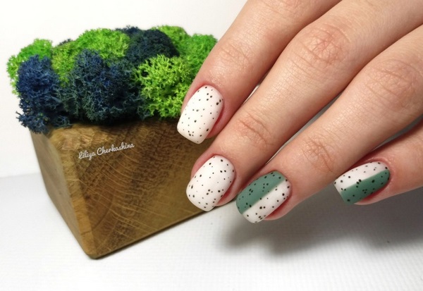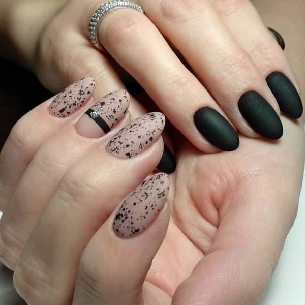 Un design très audacieux de manucure avec un motif qui ressemble à l'apparence d'œufs de caille a été proposé par des maîtres des ongles au cours de la prochaine saison. Cette technique à ongles est présentée dans une variété d’idées et de styles de manucure mate. Un revêtement spécial qui vous permet d'obtenir un effet mat recherché et recherché «d'œufs de caille» sur les ongles, que vous pouvez trouver chez Illamasqua. Trendy sera une manucure mate à la mode avec un design similaire en jaune, violet, rose, beige, rouge, vert qui peut être combiné en toute sécurité dans une manucure.