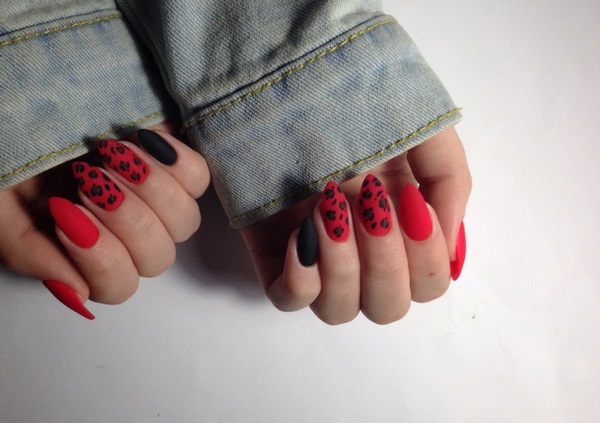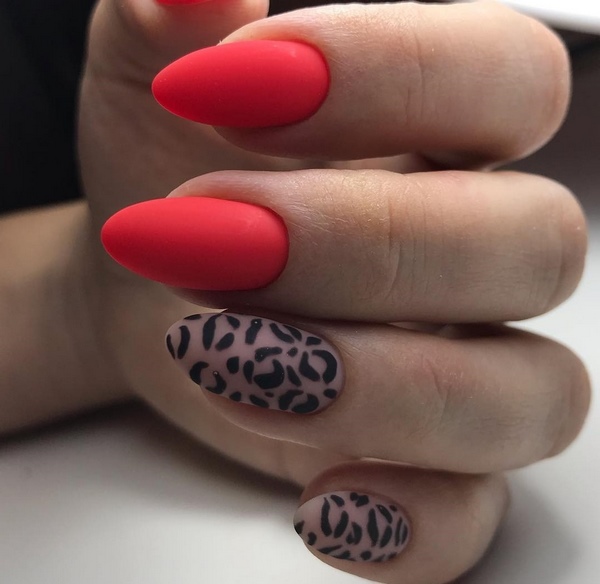 Des impressions sur les ongles dans le style de "l'animalisme" et des motifs prédateurs seront des succès du nail art à la mode de la saison à venir. La nouvelle manucure prédatrice mate est offerte dans une couleur vive et calme, avec un décor supplémentaire de strass, de feuilles et d’étincelles. Les maîtres Neil proposent de décorer un ou deux doigts avec un léopard ou tout autre motif prédateur, ce qui ajoutera de la sophistication aux ongles mats de toute longueur.