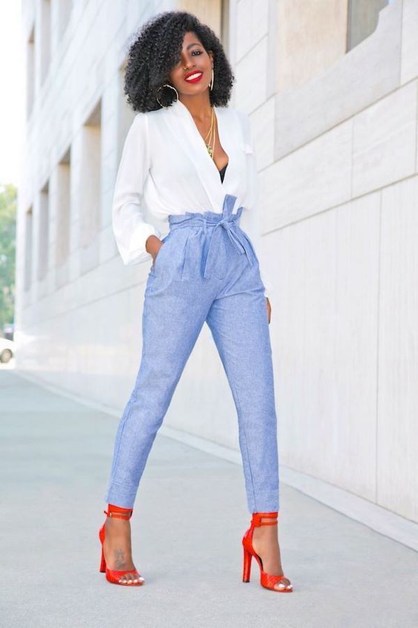 Aujourd’hui, il ne sera pas possible de surprendre une personne qui porte un pantalon taille haute, mais les concepteurs ont pu présenter cette tendance avec un bel accent: des volants et des plis mignons. Une bretelle fine ou une cravate en forme de nœud à volants créera un accent incroyable sur la taille, en insistant sur les formes féminines.